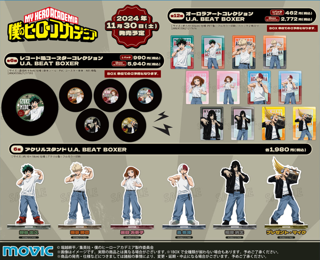 僕のヒーローアカデミア 【2024年11月30日】僕のヒーローアカデミア U.A. BEAT BOXERフェア PR 2024年10月2日 2024年11月29日 Facebook postはてブLINEPocketFeedly 全国のアニメイト、アニメイト通販にてU.A. BEAT BOXERフェアが開催決定! フェア特典 スタッフパス風ステッカー(全6種) フェア詳細はこちら U.A. BEAT BOXERグッズも多数発売予定! 予約サイトまとめ BEAT BOXER かっちゃんアイテムも発売 予約サイトまとめ Facebook postはてブLINEPocketFeedly