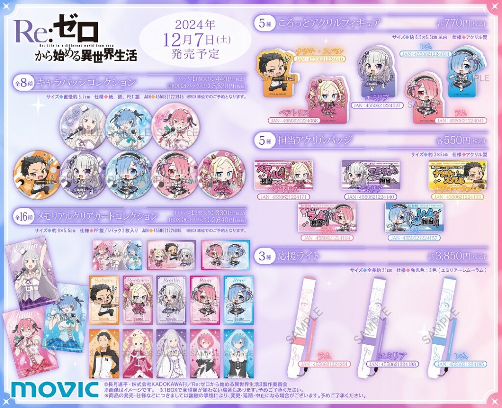 Re:ゼロから始める異世界生活 【2024年12月7日】Re:ゼロから始める異世界生活 3期放送記念 アニメイトフェア PR 2024年10月4日 2024年12月6日 Facebook postはてブLINEPocketFeedly 全国のアニメイト、アニメイト通販にて3期放送記念フェアが開催決定! フェア特典 ブロマイド(全6種) フェア詳細はこちら 新商品も多数発売! 商品一覧・予約サイトまとめ Facebook postはてブLINEPocketFeedly