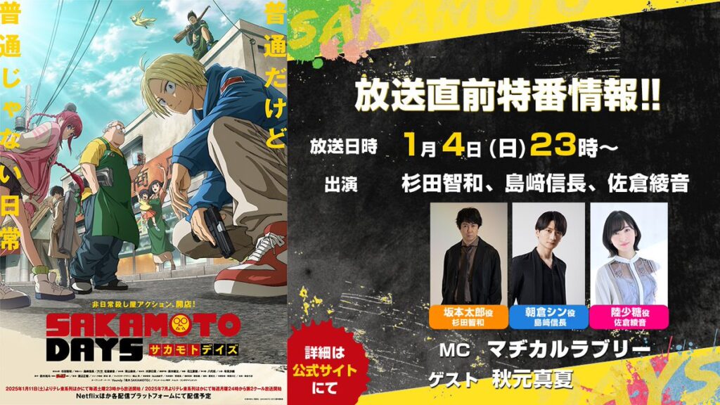SAKAMOTO DAYS SAKAMOTO DAYS 2025年1月4日(土)予定 PR 2025年1月4日 2025年1月4日 Facebook postはてブLINEPocketFeedly 目次(タップで飛べます)1 コミックス20巻発売日2 SAKAMOTO HOLIDAYS 1巻 発売日3 TSUTAYA限定フェア開催4 最強ジャンプ2025年2月号発売日5 放送直前特番6 週刊少年ジャンプ6・7合併号発売7 ジップジャケット応募受付開始 コミックス20巻発売日 コミックス情報まとめ SAKAMOTO HOLIDAYS 1巻 発売日 集英社HP TSUTAYA限定フェア開催 フェア詳細はこちら 最強ジャンプ2025年2月号発売日 取扱サイトまとめ 放送直前特番 23時よりテレ東にて放送! テレビ東京HP 週刊少年ジャンプ6・7合併号発売 ★巻頭カラーはSAKAMOTO DAYS ジップジャケット応募受付開始 少年ジャンプHP Facebook postはてブLINEPocketFeedly