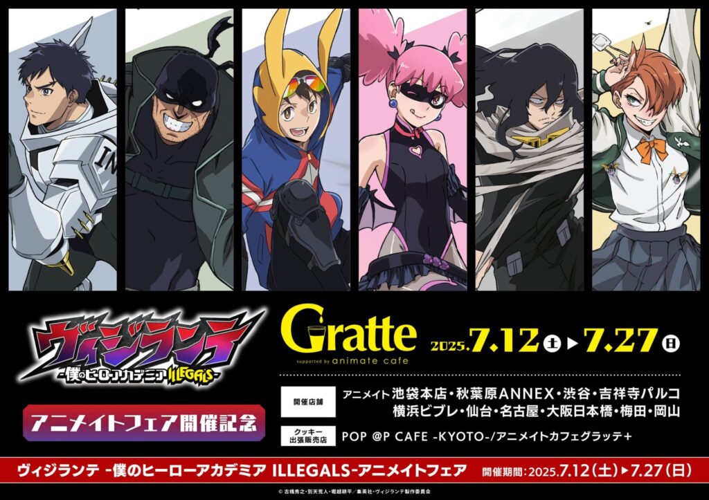 ヴィジランテ 【2025年7月12日】TVアニメ『ヴィジランテ -僕のヒーローアカデミア ILLEGALS-』アニメイトフェア PR 2025年6月18日 2025年7月11日 Facebook postはてブLINEPocketFeedly フェア特典 ブロマイド(全6種) フェア詳細はこちら グッズも多数新登場! 商品一覧はこちら 同日よりグラッテフェアも開催! 詳細はこちら Facebook postはてブLINEPocketFeedly