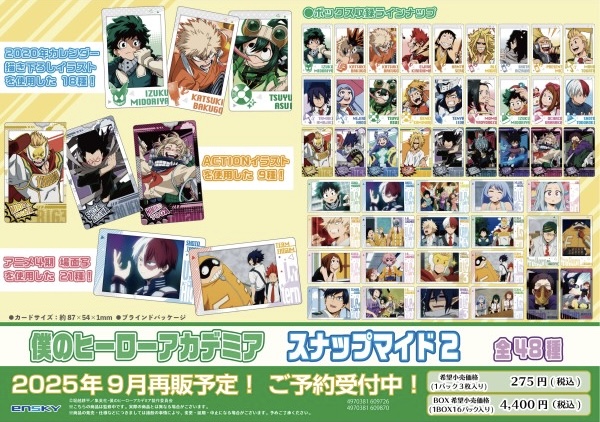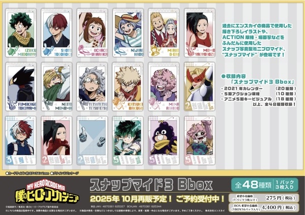 僕のヒーローアカデミア 【2025年9月~10月】僕のヒーローアカデミア スナップマイド 1~4(再販) PR 2025年7月2日 2025年7月14日 Facebook postはてブLINEPocketFeedly 目次(タップで飛べます)1 予約サイト2 スナップマイド13 スナップマイド24 スナップマイド3( Abox / Bbox )5 スナップマイド4( Abox / Bbox ) 予約サイト ★予約サイト確認次第随時追記します エンスカイショップ送料無料楽天ブックス15%OFF送料無料METALBOX25%OFFあみあみ15%OFFアニメイト スナップマイド1 ▼予約サイト エンスカイショップ送料無料METALBOX25%OFFアニメイト スナップマイド2 ▼予約サイト エンスカイショップ送料無料METALBOX25%OFFアニメイト スナップマイド3( Abox / Bbox ) ▼予約サイト エンスカイショップ送料無料METALBOX25%OFFアニメイト スナップマイド4( Abox / Bbox ) ▼予約サイト エンスカイショップ送料無料METALBOX25%OFFアニメイト Facebook postはてブLINEPocketFeedly