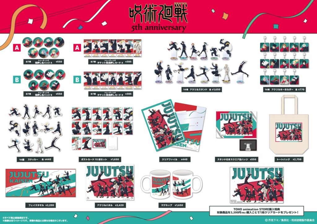 呪術廻戦 TVアニメ 呪術廻戦 5周年記念ビジュアルグッズ PR 2026年1月9日 2026年4月10日 Facebook postはてブLINEPocketFeedly 第1弾 / 第2弾 2026年4月10日(金)発売 アニメイトTOHO animation STORE 第3弾 TOHO animation STORE Facebook postはてブLINEPocketFeedly