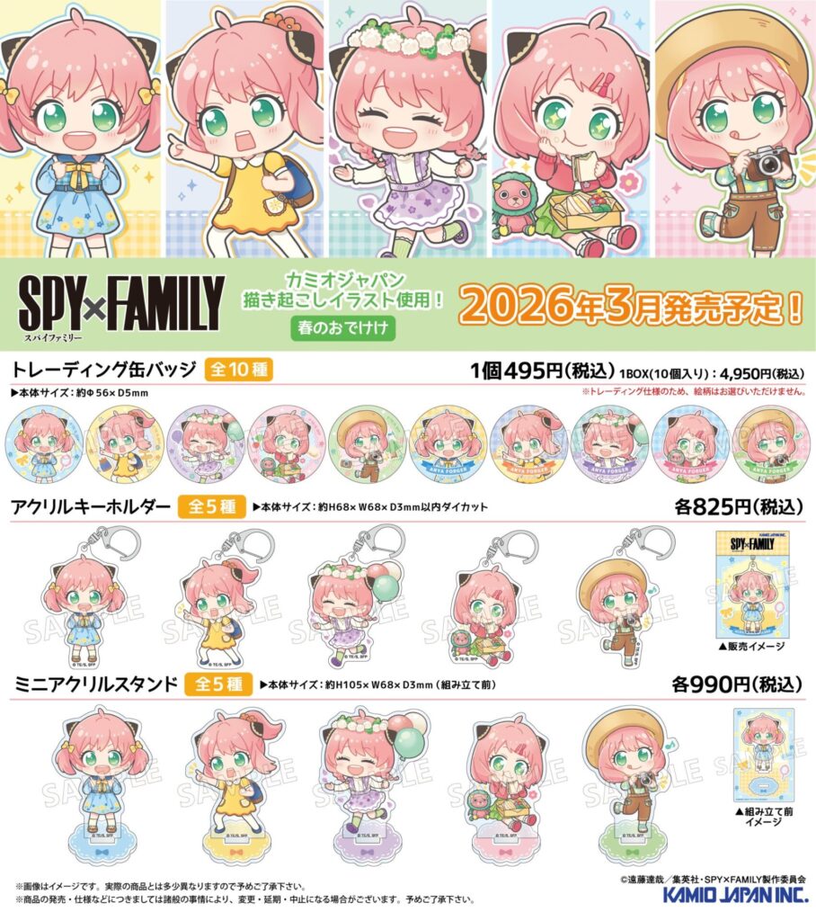 SPY×FAMILY TVアニメ『SPY×FAMILY』春のおでけけフェア in アニメイト PR 2026年1月22日 2026年1月22日 Facebook postはてブLINEPocketFeedly フェア特典 ポストカード(全5種) フェア詳細はこちら グッズも多数新登場! ▼予約サイト アニメイト★フェア対象 Facebook postはてブLINEPocketFeedly