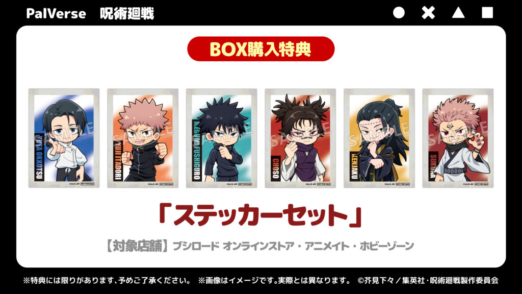 呪術廻戦 【2026年7月31日】Palverse 呪術廻戦 PR 2026年2月13日 2026年2月13日 Facebook postはてブLINEPocketFeedly 予約サイト ★2月20日(金)予約開始予定! アニメイト特典ありブシロードオンライン特典ありホビーゾーン特典あり アニメイト、ブシロードオンライン、ホビーゾーンではBOX購入特典あり 参考:Palverse HP Facebook postはてブLINEPocketFeedly