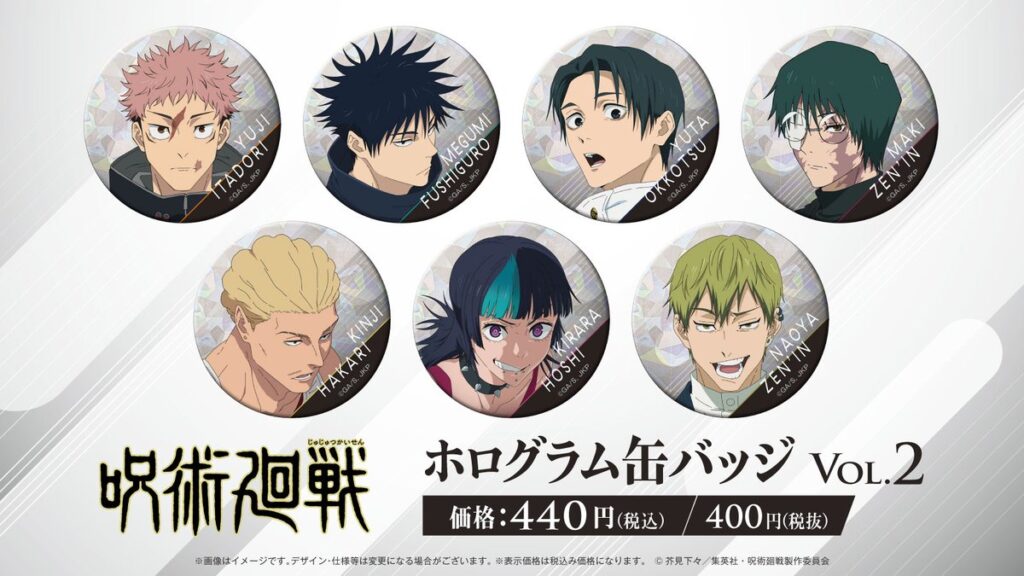 呪術廻戦 呪術廻戦 ホログラム缶バッジ Vol.3 PR 2026年3月23日 2026年3月23日 Facebook postはてブLINEPocketFeedly 予約サイト TOHO animation STORE Vol.2も一部予約受付中! 2026年4月発売予定 駿河屋17%OFFアニメイトTOHO animation STORE Facebook postはてブLINEPocketFeedly
